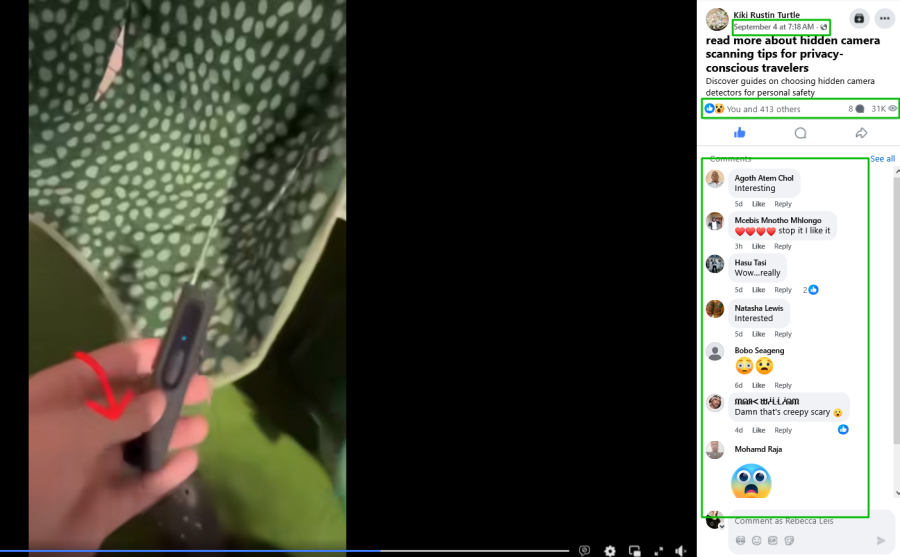 2. Scan the area for hidden cameras, GPS trackers, or RF transmitters.